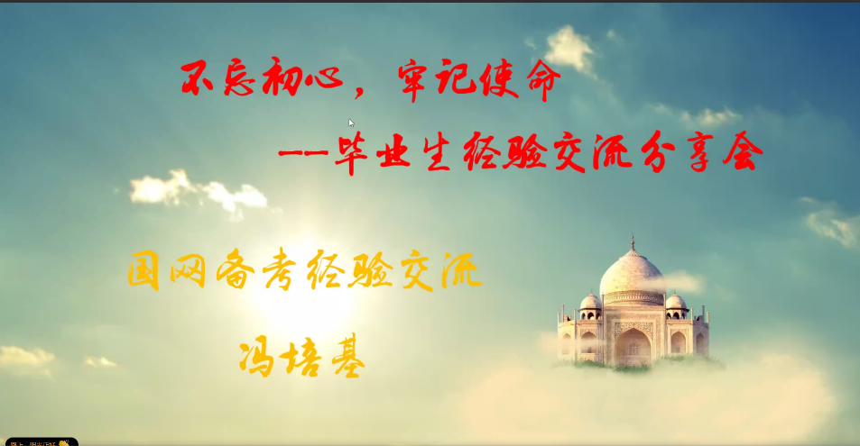 最后,今年在国网陕西考试中取得优异成绩的研1814班冯培基向大家分享了复习国网考试的时间安排,对考试科目、考试题型以及网申和报名等各环节进行逐一讲解,以自身实际经验,概括了复习国网考试的流程以及各阶段需要完成的备考任务。