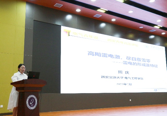 熊庆副教授以“高飚雷电激,尽日霰雪零—雷电的形成及特征”为报告题目,介绍了雷电形成机理、雷电分类以及雷电的一般特征。通过雷击模拟实验视频展示,解决了同学们关于雷雨天打电话会不会增加被雷击中概率的疑惑,得出结论:打电话对我们身边的磁场影响很小,不会增加被雷击中的概率,主要原因为物体自身高度及尖端易引发雷击。