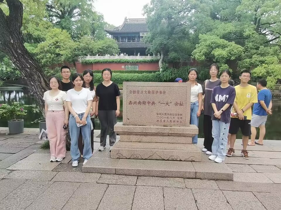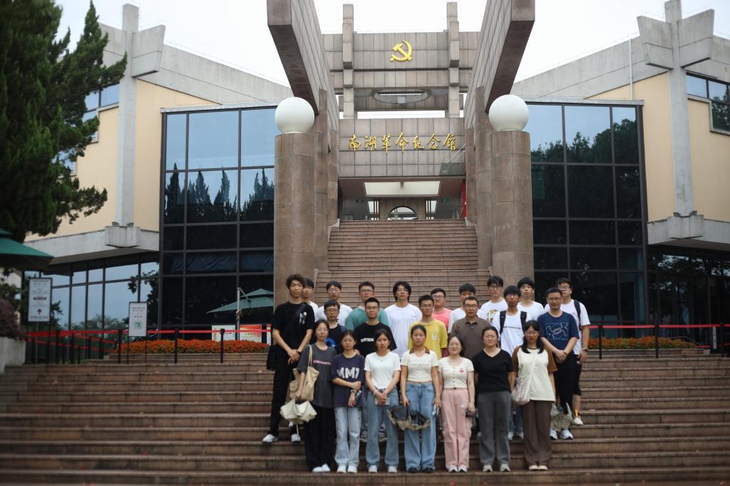 实习队首先近距离瞻仰了南湖“红船”,在中共一大会址纪念碑前合影留念。同学们深刻认识到“红船精神”内涵丰富、思想深邃,是中国革命精神之源和党的先进性之源,是指引我们不断前进的强大思想武器,是我们共产党人薪火相传的精神源泉、红色基因。秀水泱泱,红船依旧;时代变迁,精神永恒。“红船精神”具有历久弥新的时代价值。在新的征程上,同学们立志要结合时代特点大力弘扬“红船精神”,敢于创新,勇于奉献,增强斗争精神、提高斗争本领,百折不挠、不懈奋斗,助力中华民族伟大复兴的巨轮行稳致远,胜利驶向光辉的彼岸。