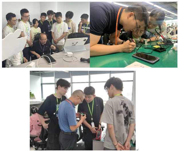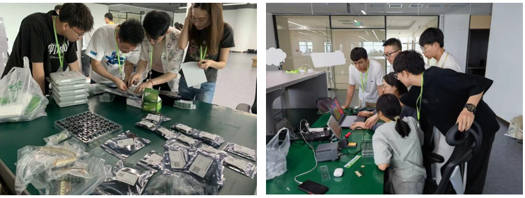 在教师组参与指导的同时,企业也提供了大量的帮助,每个小组都配备了企业导师,其他研发工程师在工作空闲时间也参与答疑解惑,包括SMT元件焊接方法,电路识图技巧,异常波形问题排查方法等无微不至的指导工作。西安研发中心的相关技术负责人均全程亲自参与示范和指导。
