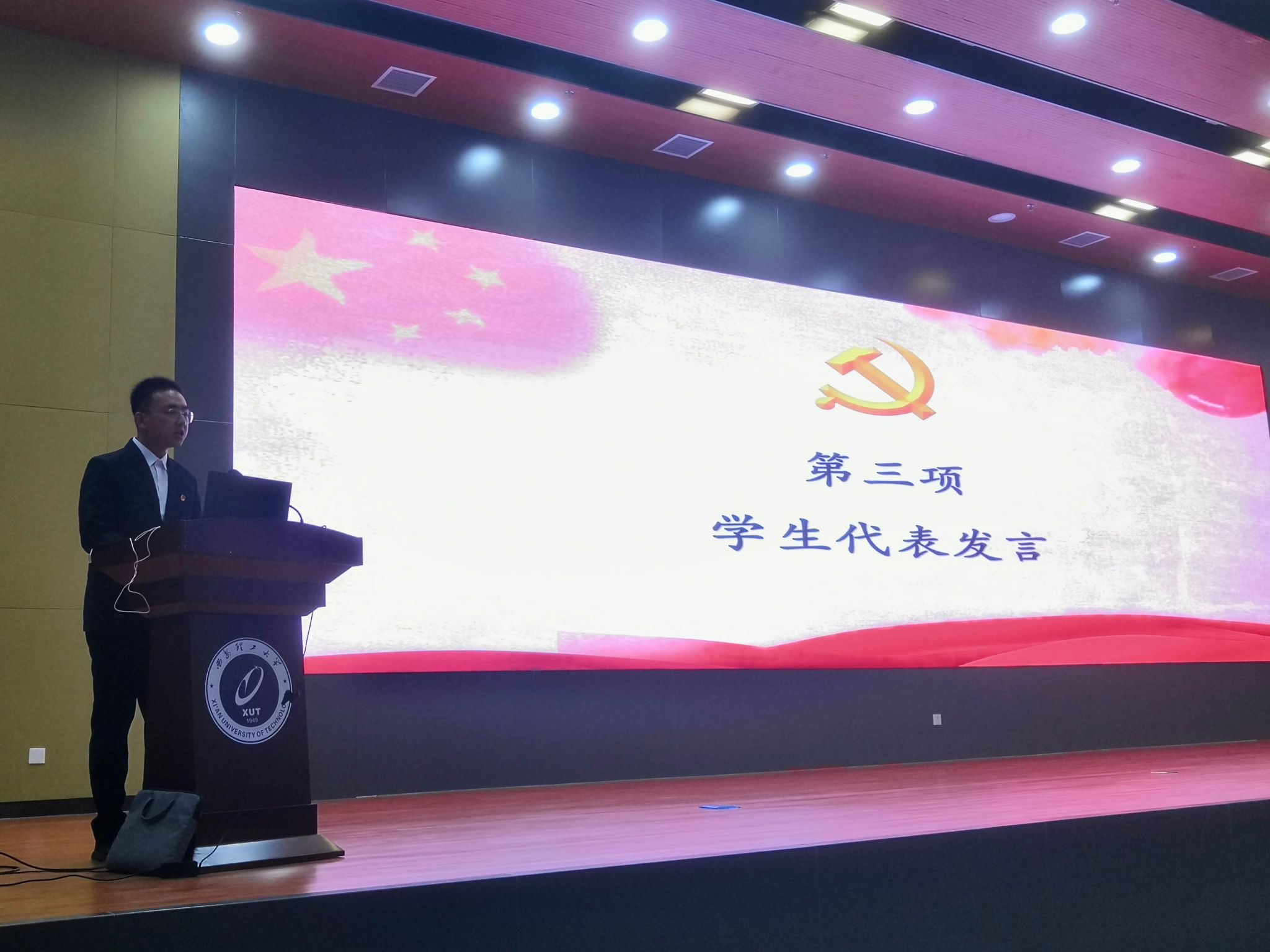 最后,电气类236班栾璞羲同学代表本期学员发言,表达了参加入党初级班培训和态度和决心,在发言中他表示将认真参加本次学习,不断提高政治素养,树立正确的世界观、人生观、价值观,主动投身于理论知识和社会实践,主动向党组织靠拢。