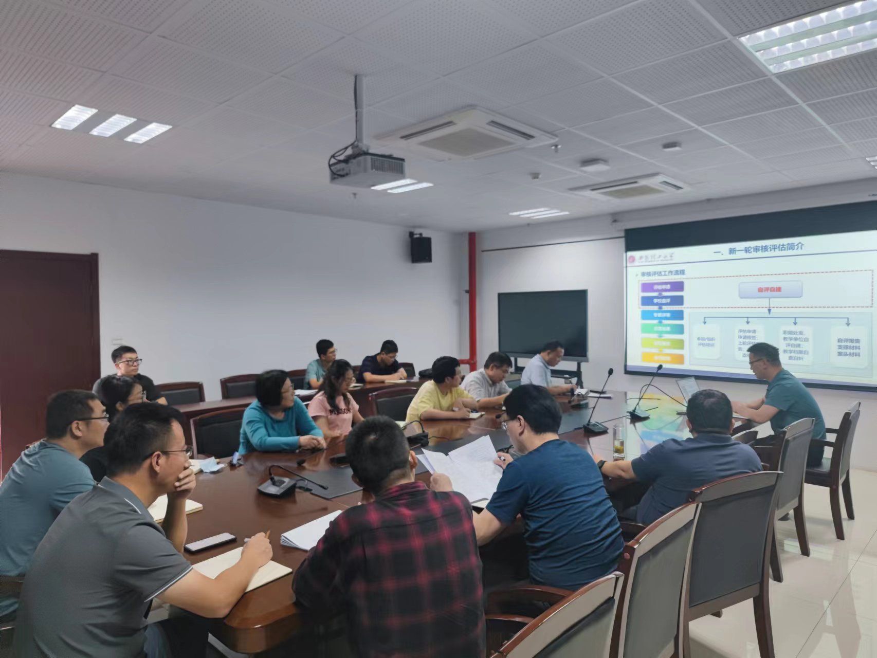 杨磊老师首先解读了新一轮审核评估简介,介绍了学校审核评估类型及指标体系、总结了学院审核评估工作开展情况,并对下一步学院工作整体安排进行了详细的部署。