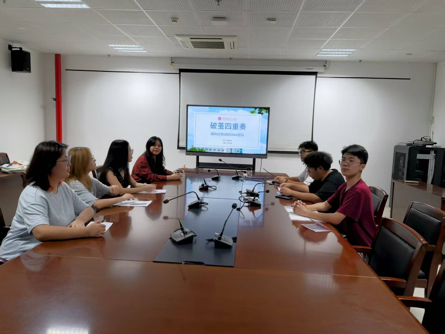 9月10日下午,官微工作室在综南1211会议室成功举办技能培训讲座。本次活动由负责人陈小洁老师主持,七位官微核心骨干成员共同参与,旨在提升团队审美素养和视觉表达能力。