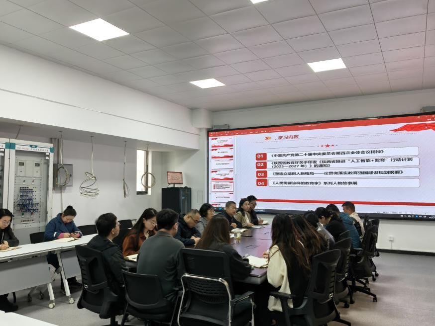 会议严格落实“第一议题”制度。巩晶骐领学了《习近平:中华民族共同体的形成和发展是人心所向、大势所趋、历史必然》重要论述,引导全体党员深刻认识铸牢中华民族共同体意识的重大意义,自觉将其融入日常工作与思考。集中学习环节,侯贝贝领学了《中国共产党第二十届中央委员会第四次全体会议精神》,刘骊解读了《陕西省教育厅关于印发〈陕西省推进“人工智能+教育”行动计划(2025—2027年)〉的通知》,使大家对教育数字化转型的前沿动态和举措有了清晰认识。田乐领学了《塑造立德树人新格局——论贯彻落实教育强国建设规划纲要》,强调了立德树人在教育强国建设中的核心地位。魏书妍分享了《人民需要这样的教育家》系列人物故事,生动展现了教育家的崇高风范与责任担当。