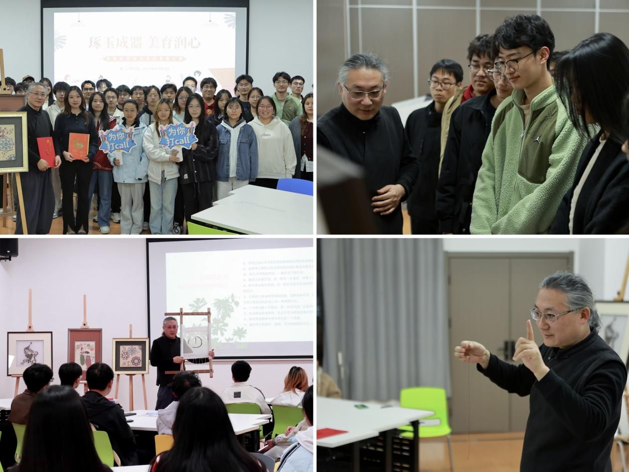 11月13日下午,电气工程学院在曲江校区一站式学生社区开展“琢玉成器·美育润心”新媒体艺术文化沙龙第七期。本次沙龙活动依托我校与陕西省文化馆共建的大学生美育实践基地,是“馆校合作”模式下的又一具体实践。活动以“古针新绣 数字新生”为主题,特邀国家高级工艺美术师、首批“长安工匠”、陕西省非物质文化遗产秦绣技艺代表性传承人张欣担任主讲嘉宾,带领师生沉浸式体验秦绣艺术的独特魅力。