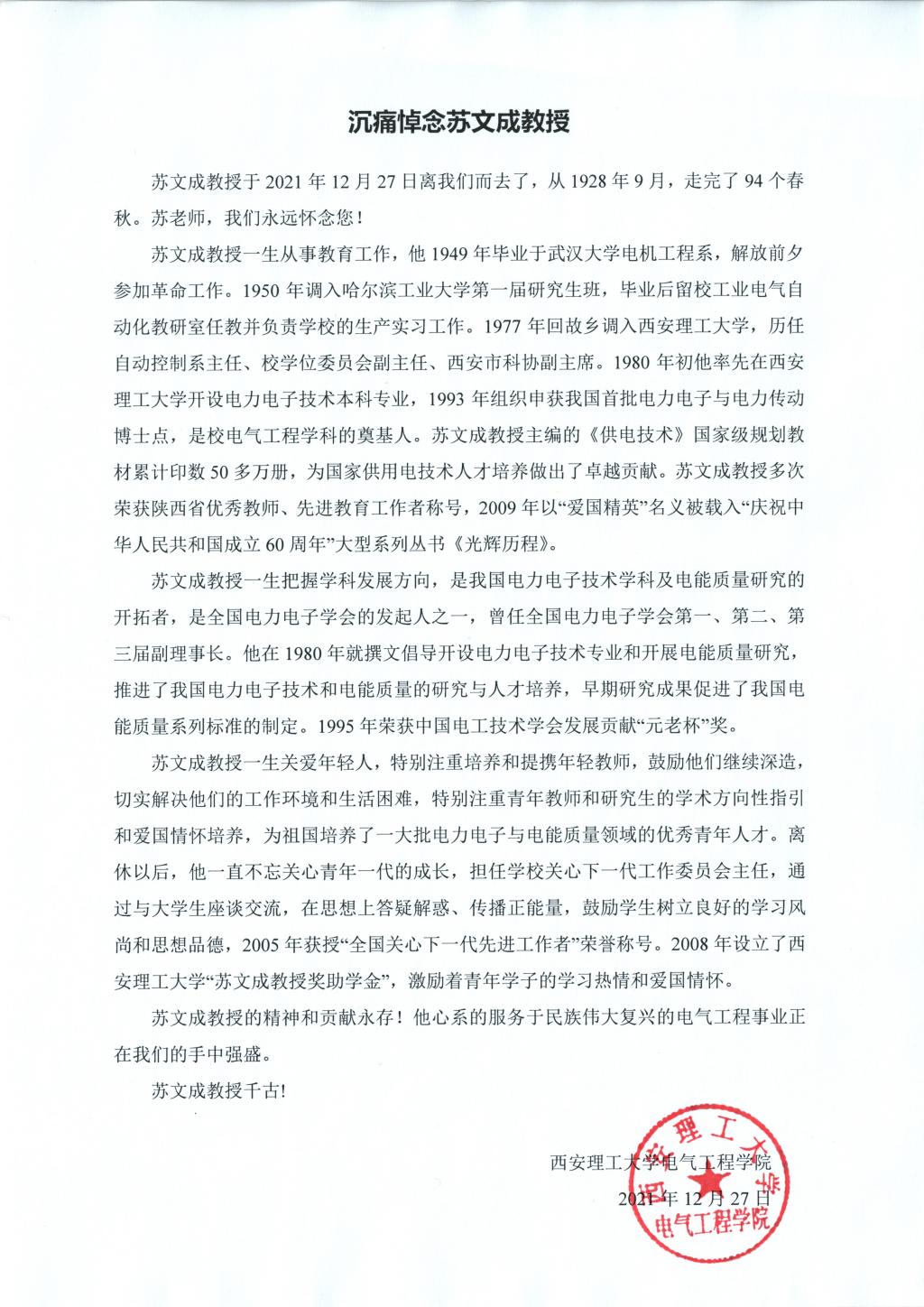 沉痛悼念苏文成教授