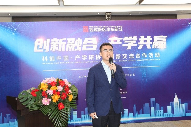 会议上,沣东新城发展改革局局长、现代产业示范区管理办公室主任崔巍致辞,并对参会的专家代表表示欢迎;沣东新城现代产业示范区管理办公室副主任王凯,对智能制造产业园与空天动力产业园进行推广与介绍;西安沣东产业园发展有限公司总经理张萍致辞并做园区推介;西安市学会科技服务中心副主任闫嵬嵬,向到场嘉宾介绍“科创中国”·西安“学会·智创园”情况。