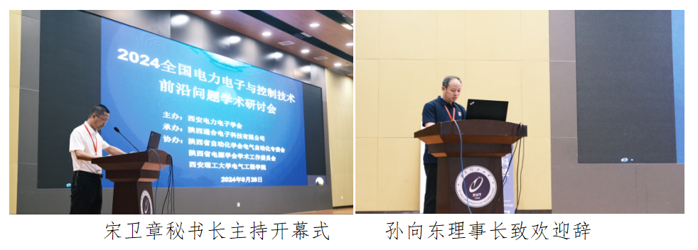 9月28日,由西安电力电子学会主办,西安理工大学电气工程学院、陕西省自动化学会电气自动化专委会、陕西省电源学会学术工作委员会协办,陕西通合电子科技有限公司承办的2024全国电力电子与控制技术前沿问题学术研讨会在西安理工大学曲江校区图书馆报告厅顺利召开,共有来自国内相关领域的知名学者、企业专家以及电气学院研究生等300余位嘉宾参加会议。大会开幕式由西安电力电子学会秘书长宋卫章教授主持,西安电力电子学会理事长孙向东教授致欢迎辞。
