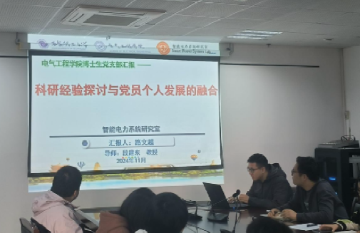 为进一步发挥党员先锋模范作用,增强支部间学术交流氛围,鼓励同学们向身边榜样学习,2024年11月6日,电气工程学院高性能电力电子系统与交流电机控制硕博党支部与博士生党支部在1211会议室联合举办“榜样在身边,奋勇共向前”主题党日活动。