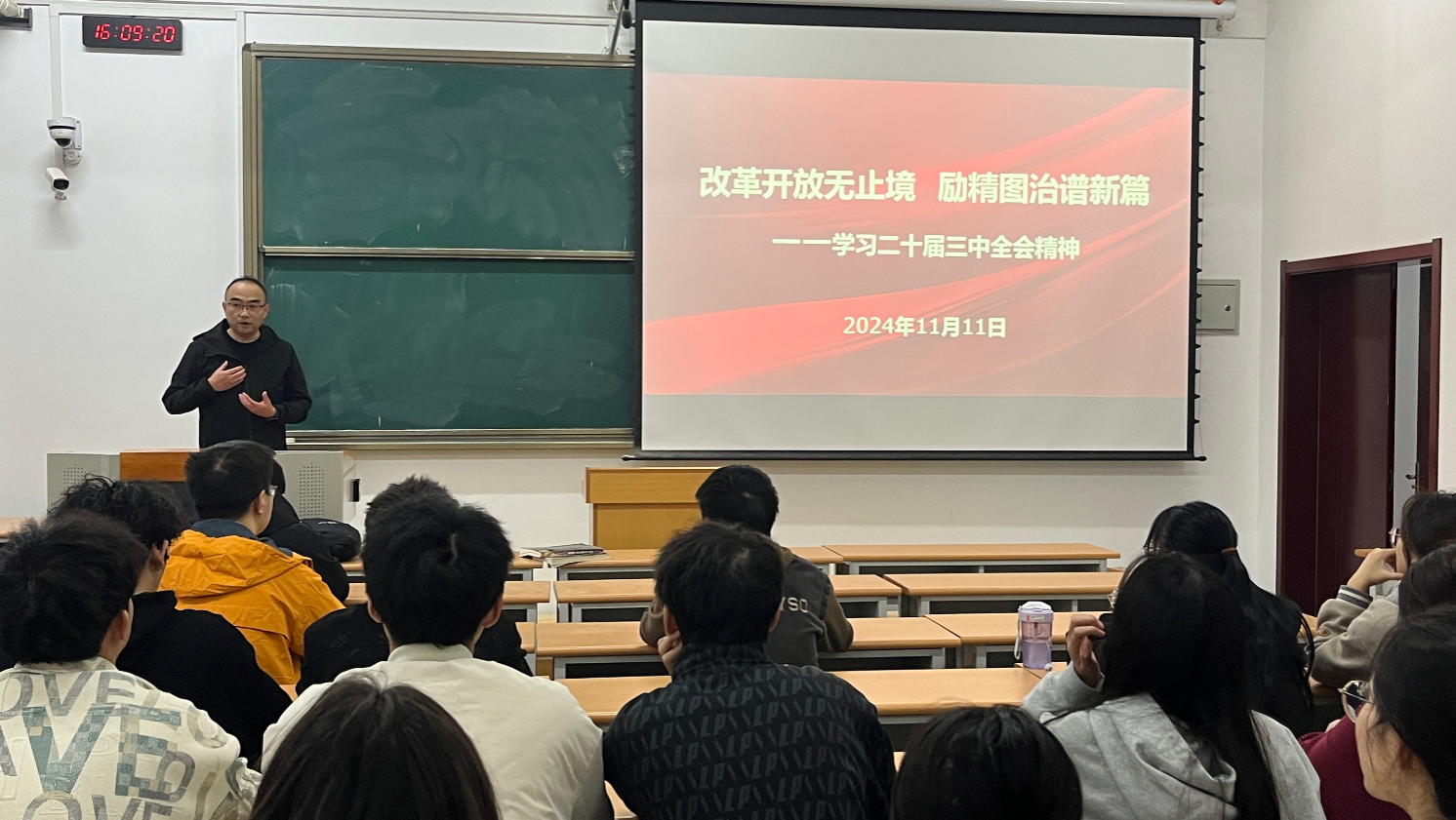 与会同学集中观看视频课程“深入学习贯彻习近平总书记关于全面深化改革的一系列新思想、新观点、新论断和党的二十届三中全会精神”。通过视频学习,全面准确把握全会的重大意义和精神实质,切实把思想和行动统一到全会精神上来。